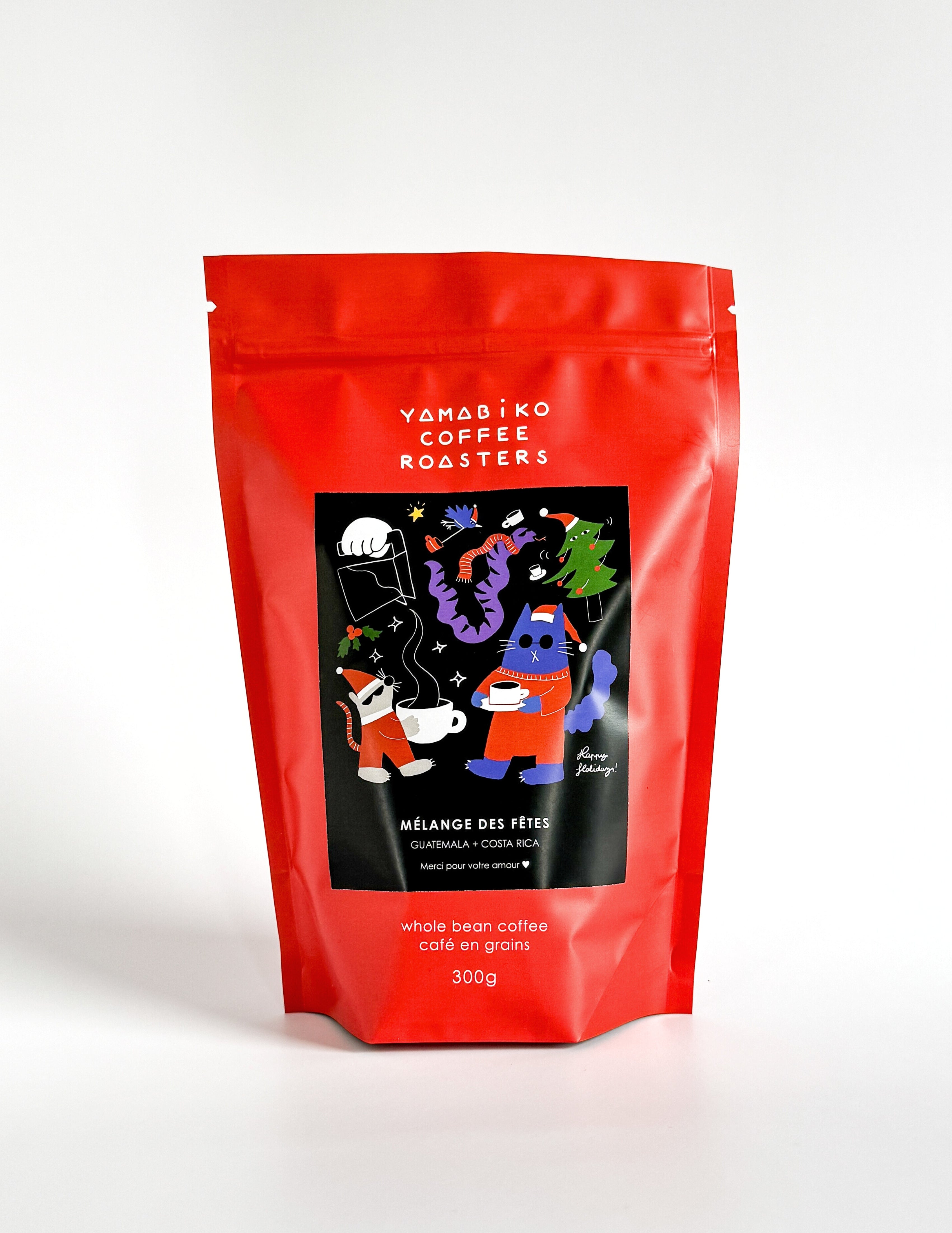Un café corsé et complexe, spécialement créé pour les fêtes. Comme la saison dernière, ce café évoque un gâteau moelleux et sucré, des fruits noirs, des fruits secs et une pointe d'alcool. Il se mariera à merveille avec les pulls moches, Dean Martin et vos beaux-parents.
